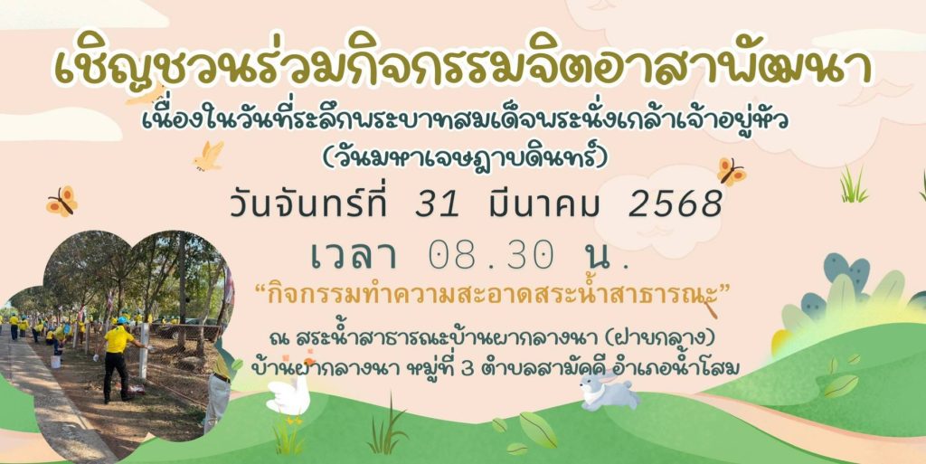 “กิจกรรมทำความสะอาดสระน้ำสาธารณะ” ณ สระน้ำสาธารณะบ้านผากลางนา (ฝ่ายกลาง)บ้านผากลางนา หมู่ที่ 3 ตำบลสามัคคี อำเภอน้ำโสม จังหวัดอุดรธานี