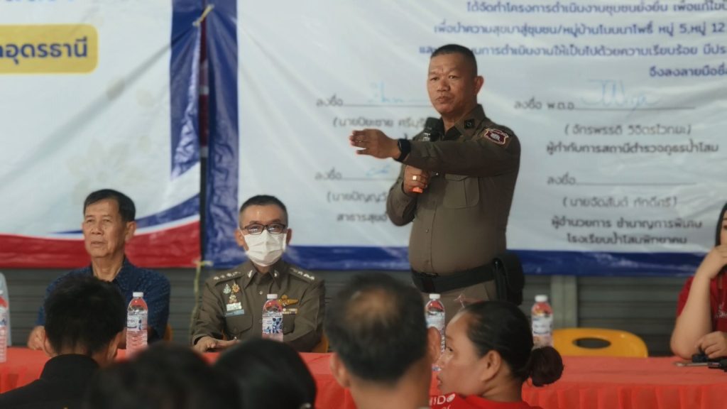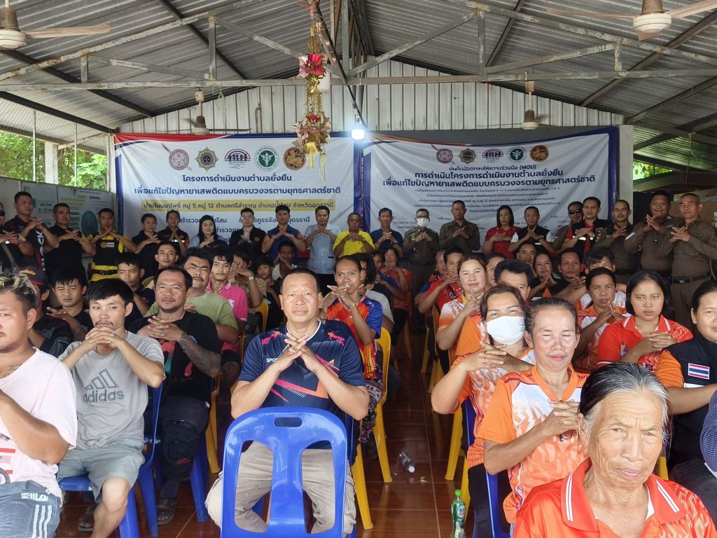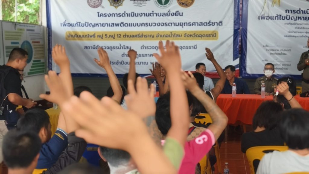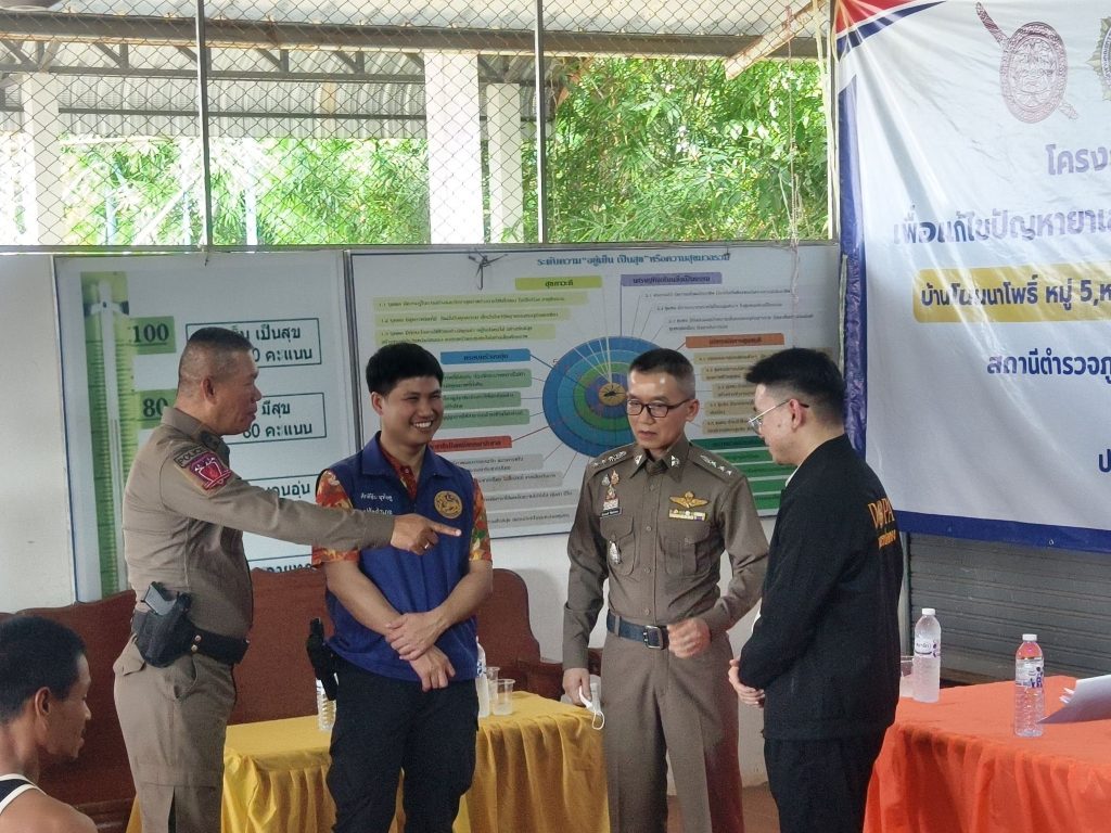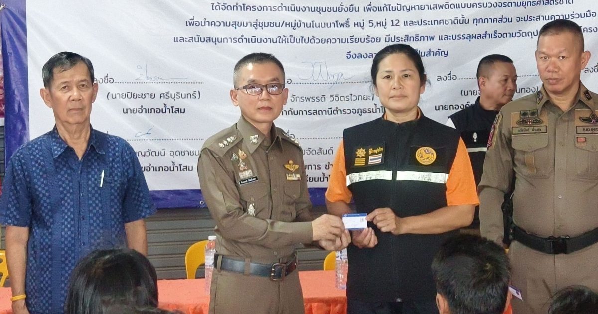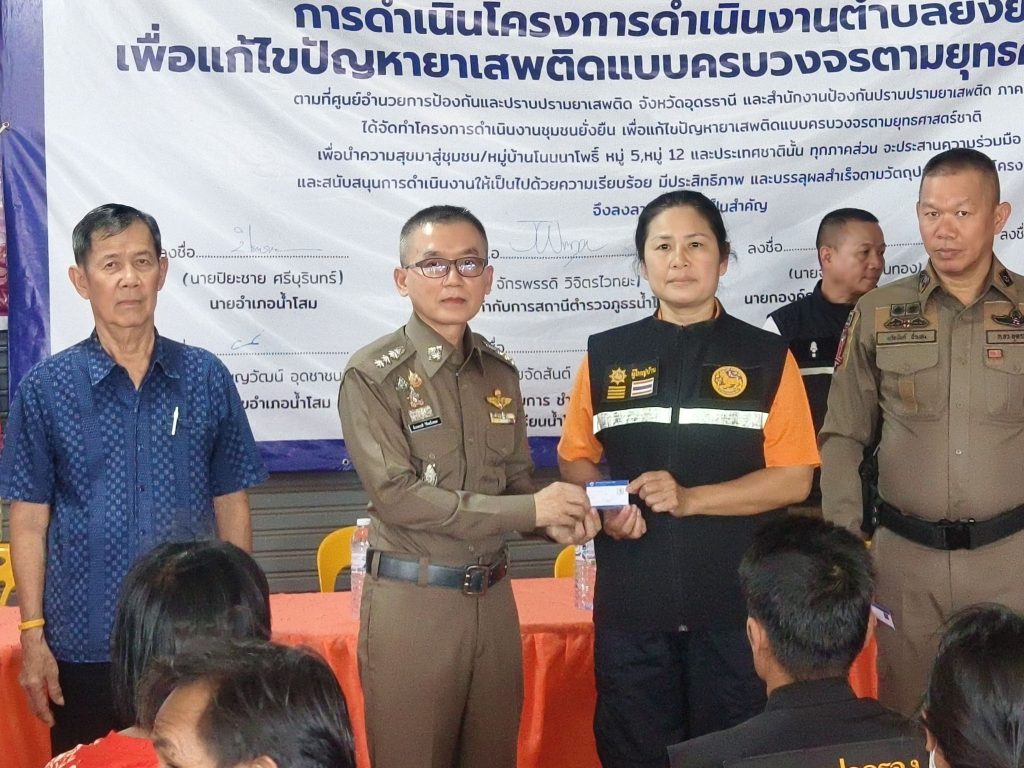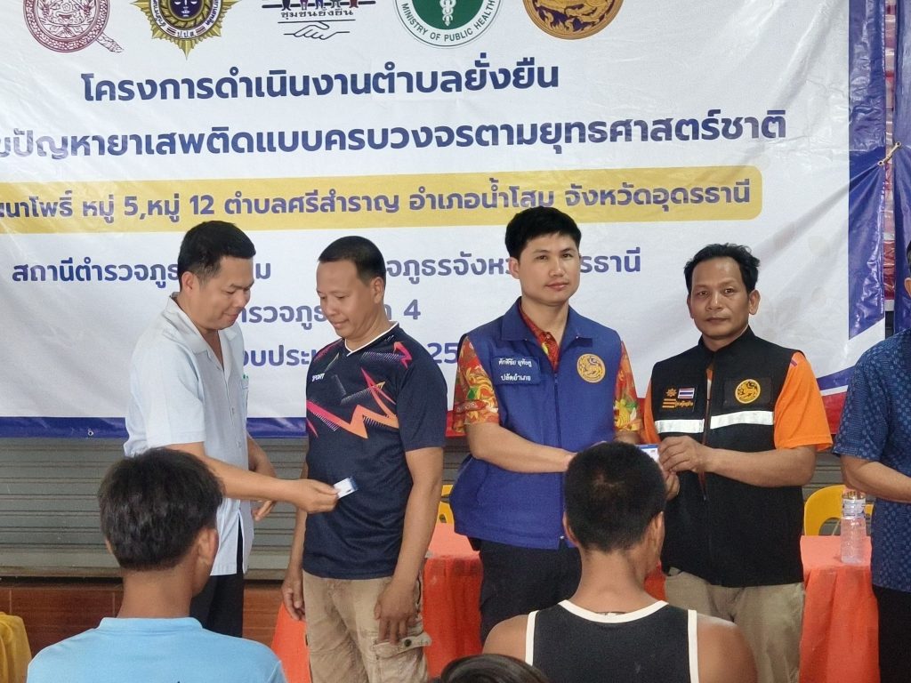 นที่ ( 31 ก.ค.68 ) เวลา 13.00 น. เป็นต้นไป พ.ต.อ.จักรพรรดิ วิจิตรไวทยะ ผกก.สภ.น้ำโสม พ.ต.ท.นวัธนันต์ ฉ่ำแสง รอง ผกก.ป.สภ.น้ำโสม พร้อมด้วย พ.ต.ท.ธีรเดช รีบเร่งรัมย์ สวป.สภ.น้ำโสม พ.ต.ท.ภิเศก เสาะสมบูรณ์ สว.สส.สภ.น้ำโสม พ.ต.ต.ถาวร ดีลุนไชย สว.อก.สภ.น้ำโสม ร.ต.อ.หญิง ณัฐทิตา มหาชาติ รอง สวป.สภ.น้ำโสม ร.ต.อ.พิพิทย์ชยานันต์ สีลาเวช รอง สว.ธร.สภ.น้ำโสม ชุดปฏิบัติการสืบสวน สภ.น้ำโสม – ชุดปฏิบัติการสายตรวจจราจร สภ.น้ำโสม – ชุดปฏิบัติการสายตรวจรถยนต์ สภ.น้ำโสม – ชุดปฏิบัติการตำรวจชุมชนสัมพันธ์ สภ.น้ำโสม – งานอำนวยการ , ธุรการ ป.ฯ , และเจ้าหน้าที่ชุดปฏิบัติการชุมชนยั่งยืน(ชมส.) ฝ่ายปกครองนำโดย ปลัดอำเภอน้ำโสม พร้อมด้วย – อส.อำเภอน้ำโสม ทีมผู้ช่วยผู้ใหญ่,แพทย์ตำบล.ฯ – ทีม ต.ศรีสำราญ – สายตรวจฯ สภ.น้ำโสม – บูรณาการส่วนราชการภาคีเครือข่าย ,ฝ่าย ปกครอง ,สาธารณสุข,ส่วนท้องถิ่น ,และประชาชน – โครงการตำบลบำบัดอย่างยั่งยืน แก้ไขปัญหายาเสพติด แบบครบวงจร ตามยุทธศาสตร์ชาติ สภ.น้ำโสม – ร่วมกันดำเนินการขั้นตอน CBTx คัดกรองผู้เสพ , สมัครใจบำบัดฯ การดำเนินกิจกรรม CBTx – ทีมผู้นำชุมชน,คณะทำงานร่วมกันพบปะ หารือแลกเปลี่ยนรับฟัง ปัญหาของผู้สมัครใจฯ – กิจกรรมเสริมกำลังใจครอบครัว ผู้ปกครอง,กล่าวความรู้สึกชื่นชม ผู้สมัคร ที่มีผลเป็น ลบ (ไม่มีสารเสพติด) – กิจกรรมบำบัด เจ้าหน้าที่ หมอ รพ.น้ำโสม ,สาธารณสุข ให้ความรู้การรักษาสุขภาพนัดหมายตรวจร่างกาย – พิธีมอบบัตรให้แก่ผู้ผ่านการบำบัดฯ โครงการตำบลบำบัดอย่างยั่งยืน – รายงานตัวผู้บำบัด ณ ศปก.ตำบลยั่งยืน ศาลาเอนกประสงค์บ้านโนนนาโพธิ์ หมู่ 5,12 ต.ศรีสำราญ อ.น้ำโสม จ.อุดรธานี