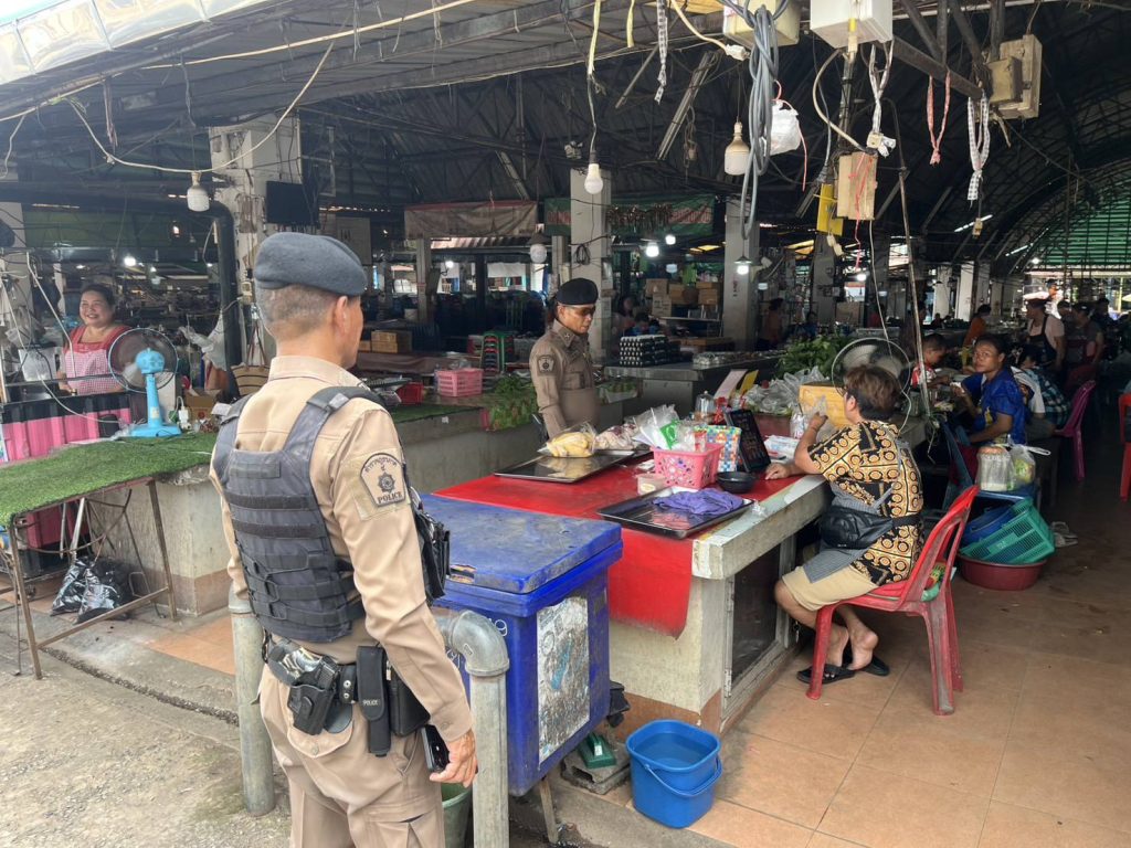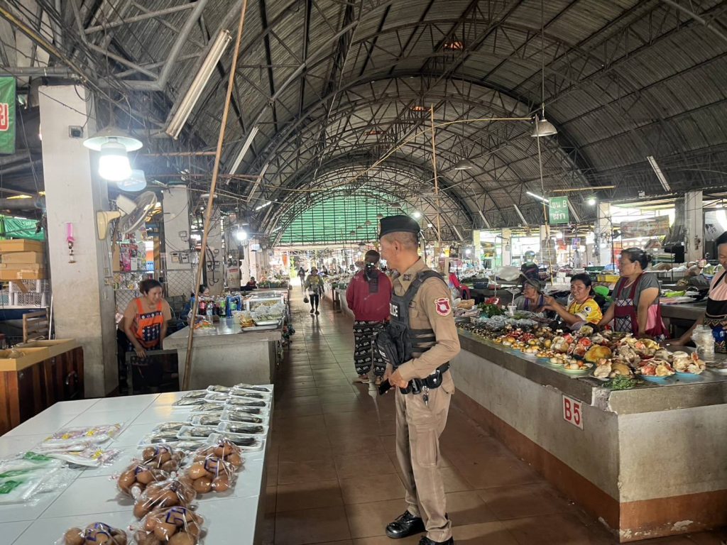 ร.ต.อ.ปวิช พันชัย รอง สวป.สภ.น้ำโสม ร้อยเวร 20 พร้อมด้วย สายตรวจรถยนต์ ออกตรวจ ในเขตพื้นที่รับผิดชอบ ในโครงการ stop walk and talk เพื่อสอบถามความเดือดร้อนของประชาชนในพื้นที่รับผิดชอบ บริเวณ ตลาดสดเทศบาลนางัว ต.นางัว อ.น้ำโสม จ.อุดรธานี พบการแจ้งความเดือดร้อนเรื่องเรี่ยไร และเหตุลักทรัพย์ภายในตลาด