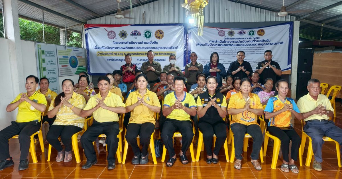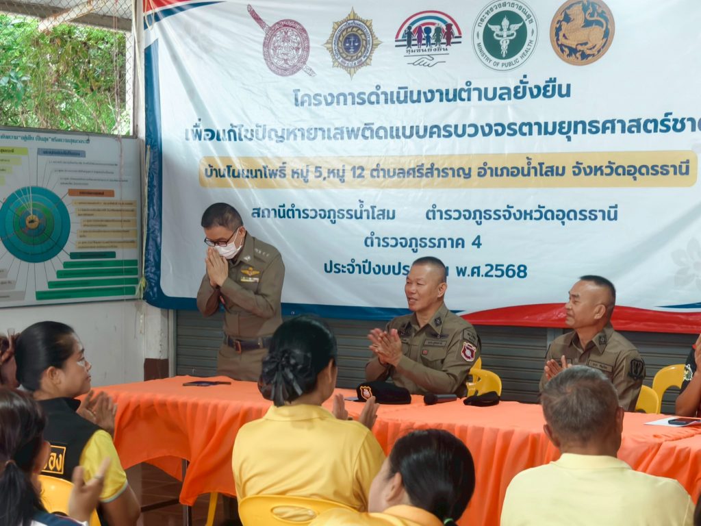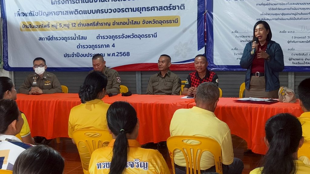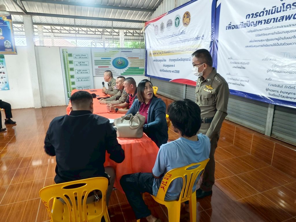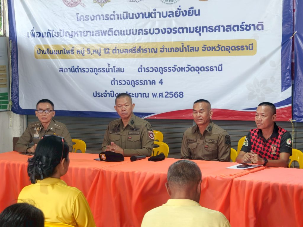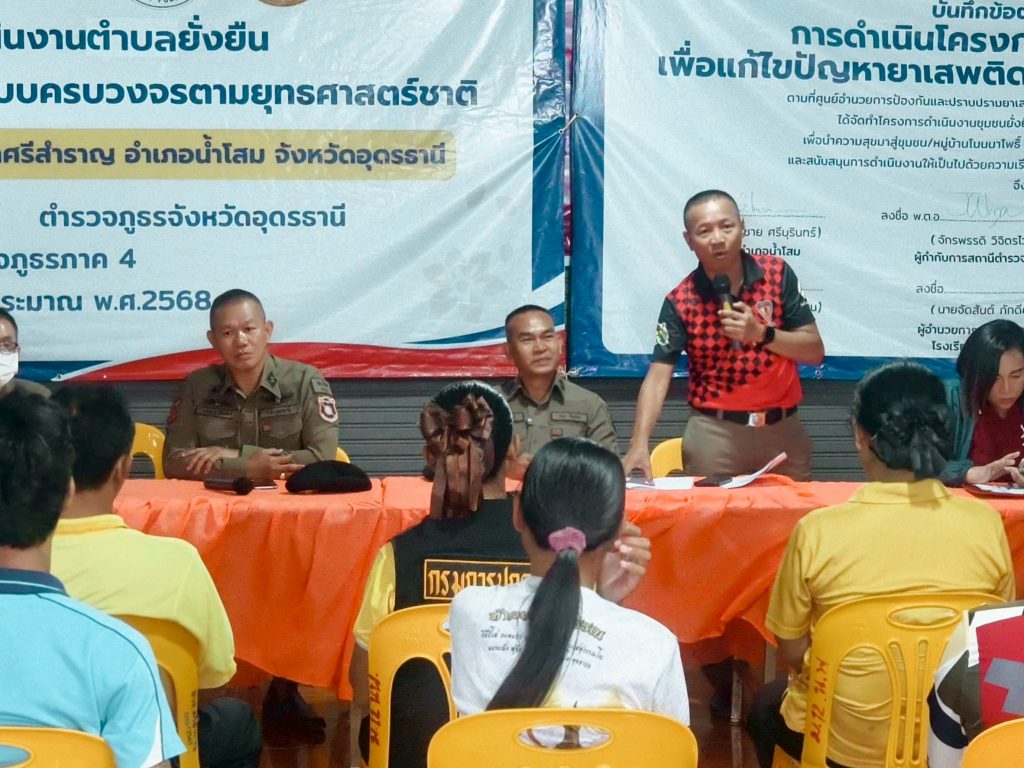 วันนี้ (21 ก.ค.68) เวลา 17.00 น. พ.ต.อ.จักรพรรดิ วิจิตรไวทยะ ผกก.สภ.น้ำโสม , พ.ต.ท.นวัธนันต์ ฉ่ำแสง รอง ผกก.ป.สภ.น้ำโสม , พ.ต.ท.ธีรเดช รีบเร่งรัมย์ สวป.สภ.น้ำโสม , พ.ต.ต.ถาวร ดีลุนไชย สว.อก.สภ.น้ำโสม , ร.ต.อ.หญิง พิพิทย์ชยานันต์ สีลาเวช รอง สว.ธร.สภ.น้ำโสม พร้อมด้วยชุดปฏิบัติการชุมชนยั่งยืน สภ.น้ำโสม บูรณาการส่วนราชการภาคีเครือข่าย ,ฝ่ายปกครอง ,สาธารณสุข,ส่วนท้องถิ่น ,และประชาชน โครงการตำบลบำบัดอย่างยั่งยืน แก้ไขปัญหายาเสพติด แบบครบวงจร ตามยุทธศาสตร์ชาติ สภ.น้ำโสม ร่วมกันดำเนินการขั้นตอน CBTx คัดกรองผู้เสพ , สมัครใจบำบัด