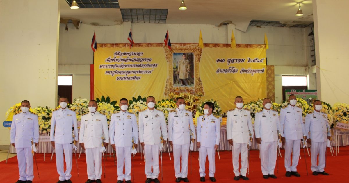 ทำบุญตักบาตรถวายพระราชกุศลฯ พระภิกษุสงฆ์ จำนวน 10 รูป และพิธีวางพวงมาลา