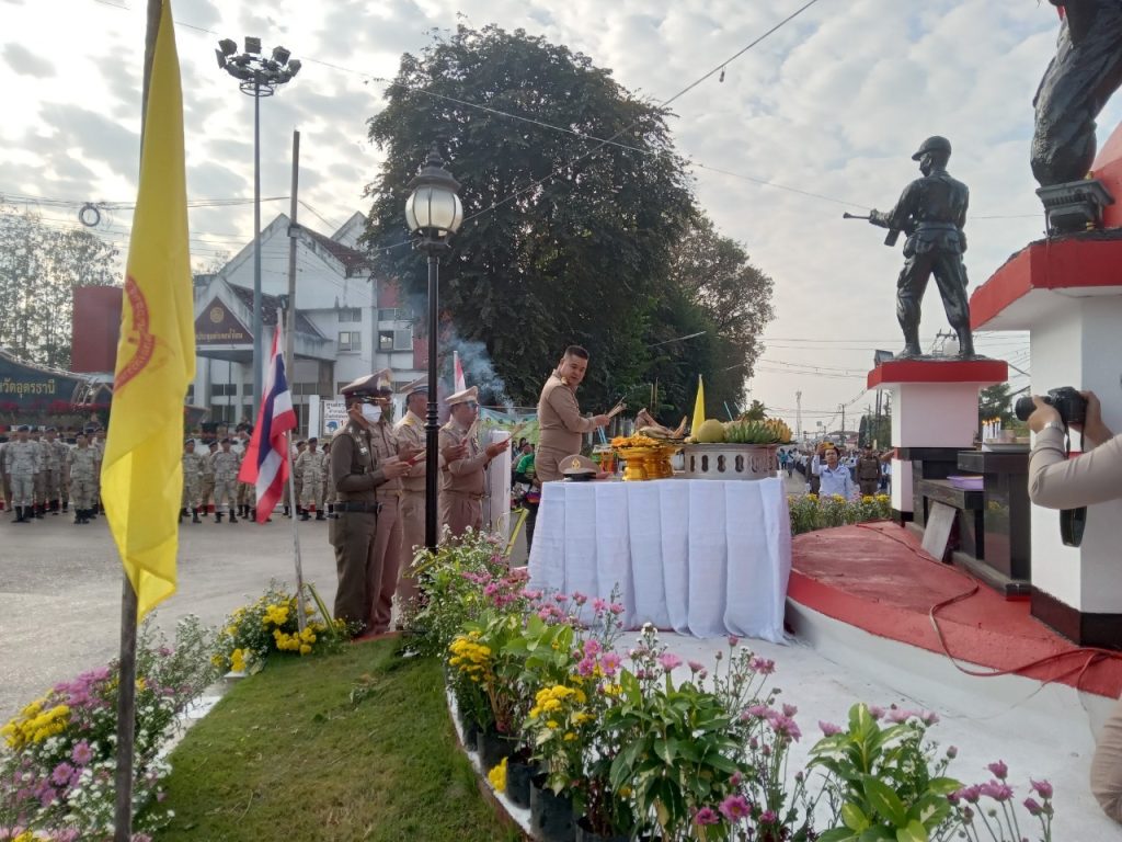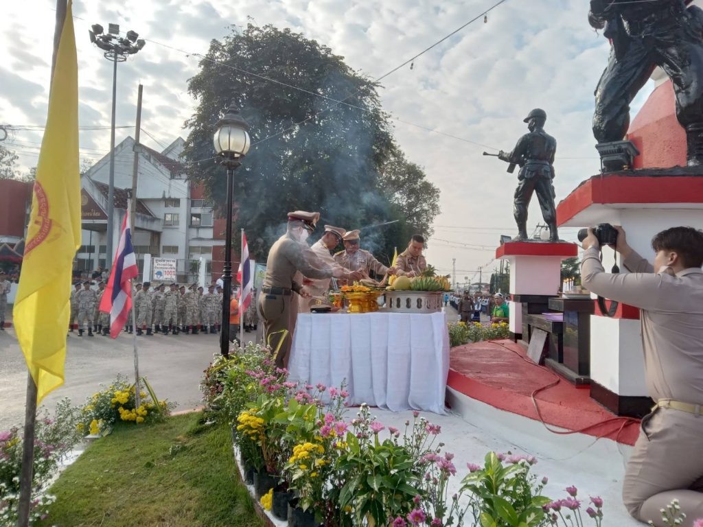 พ.ต.อ.จักรพรรดิ วิจิตรไวทยะ ผกก.สภ.น้ำโสม พร้อมนายอำเภอน้ำโสม หัวหน้าส่วนราชการและประชาชน ร่วมทำพิธีตักบาตร บวงสรวง อนุเสาวรีย์วีรชนน้ำโสม ณ วงเวียนอนุเสาวรีย์วีรชนน้ำโสม ต.ศรีสำราญ อ.น้ำโสม จ.อุดรธานี 41210