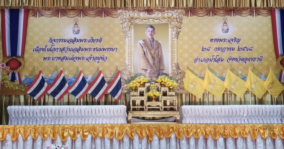 วันนี้ (28 กรกฎาคม 2568) เวลา 17.00 น. พ.ต.อ.จักรพรรดิ วิจิตรไวทยะ ผกก.สภ.น้ำโสม พร้อมด้วย ข้าราชการตำรวจ สภ.น้ำโสม เข้าร่วมกิจกรรมพิธีถวายเครื่องราชสักการะและวางพานพุ่มเงิน-พุ่มทอง และพิธีจุดเทียนถวายพระพรชัย มงคล เนื่องในโอกาสวันเฉลิมพระชนมพรรษา พระบาทสมเด็จพระเจ้าอยู่หัว 28 กรกฎาคม 2568 ณ หอประชุมอำเภอน้ำโสม อำเภอน้ำโสม จังหวัดอุดรธานี
