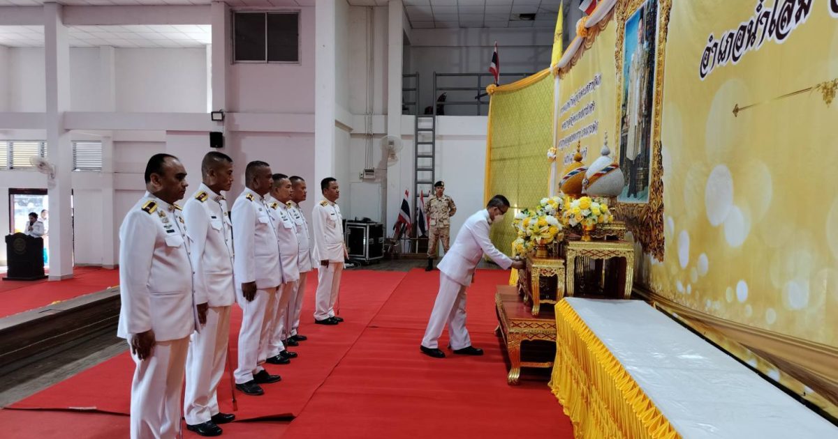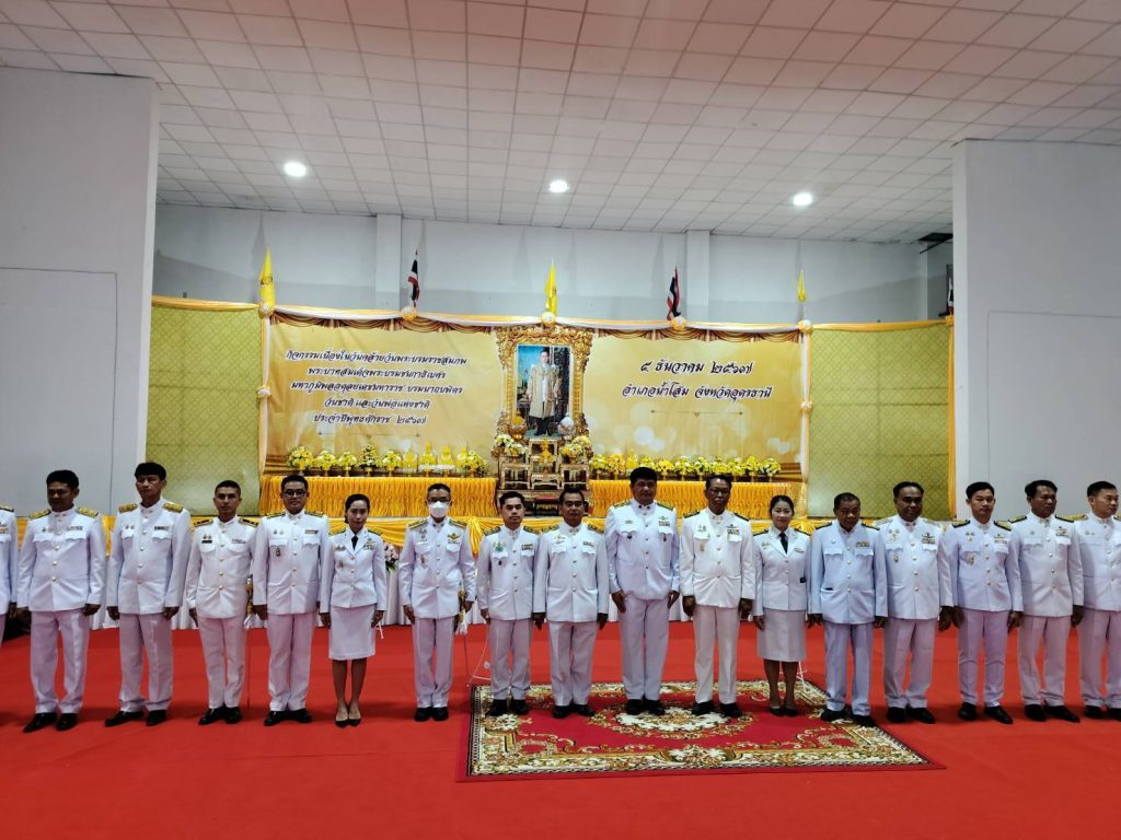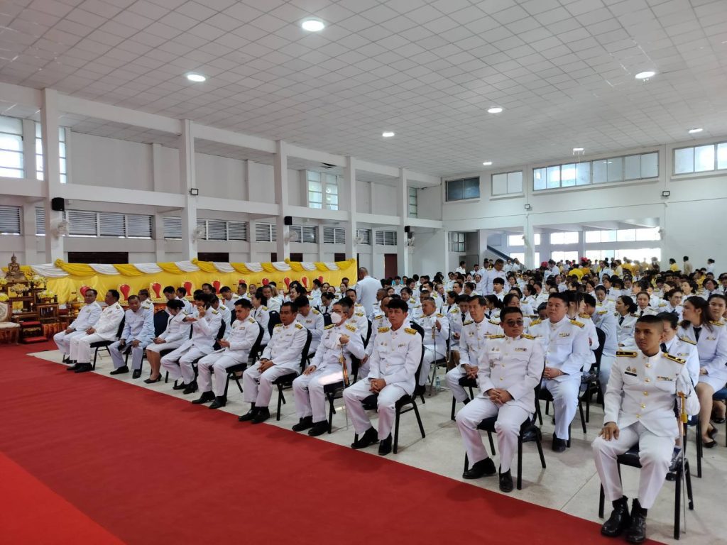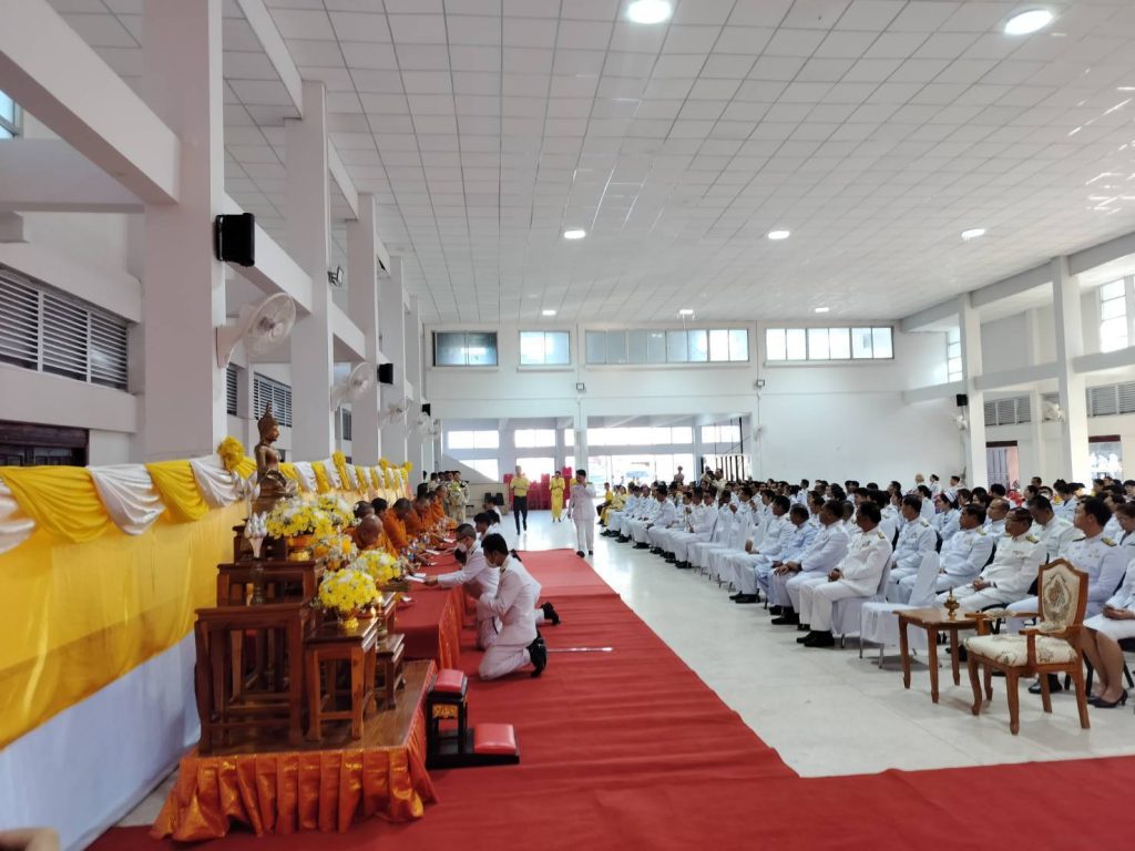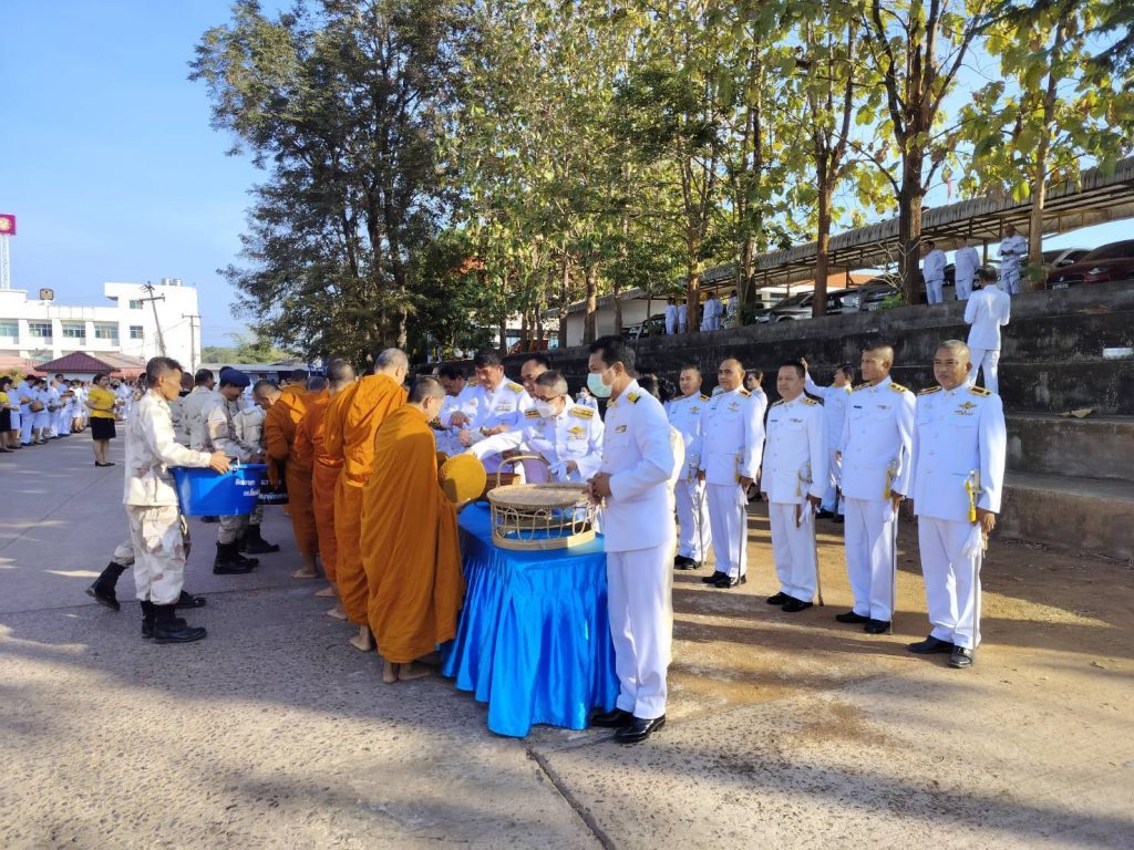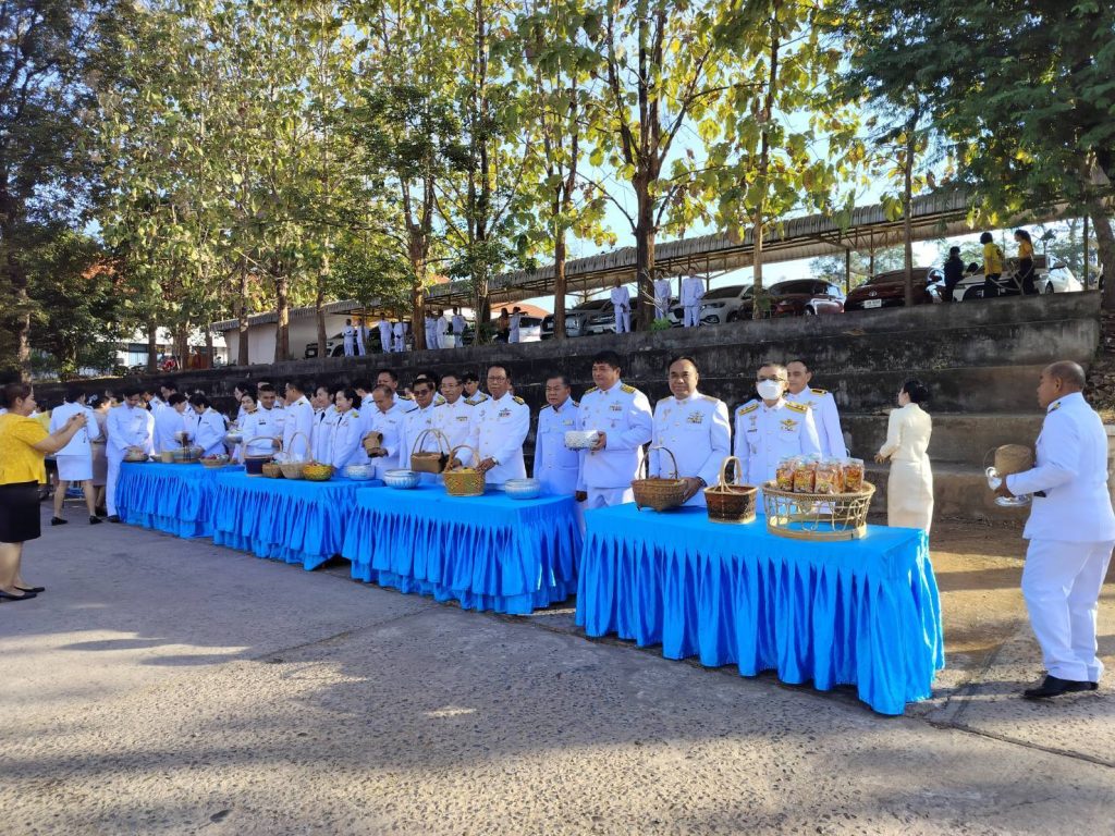 - ร่วมพิธีทำบุญตักบาตรถวายเป็นพระราชกุศล เวลา 07.00 น. พระสงฆ์ จำนวน 10 รูป รับบิณฑบาต และ พิธีวางพานพุ่มดอกไม้ถวายบังคมฯ เวลา 08.10 น.(ต่อเนื่องจากพิธีทำบุญตักบาตร)